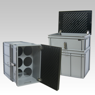Les valises plastiques de la société Engels sont réalisées à partir d'accessoires. En équipant les bacs d'un couvercle à charnières résistant hermétique et de poignées solides, vous obtenez une valise particulièrement bien conçue.