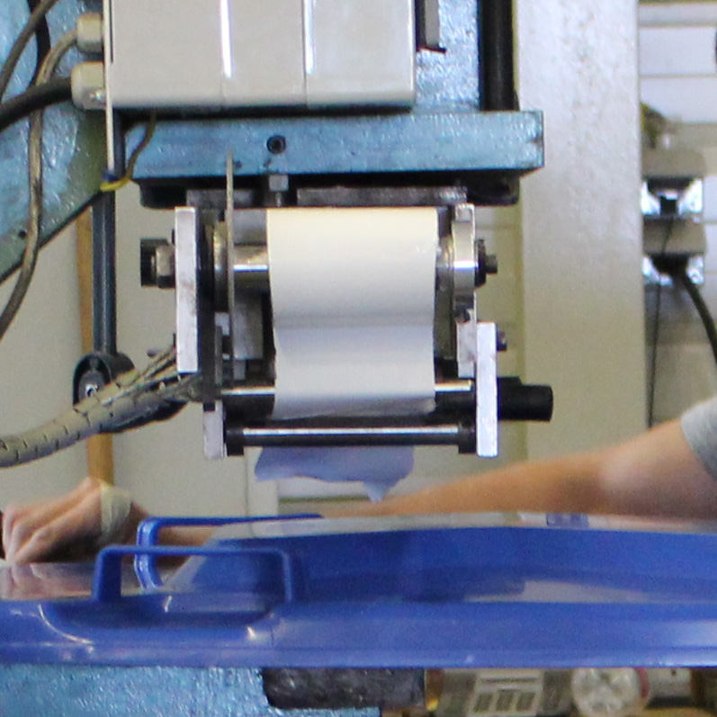 Pour appliquer un marquage clair sur les bacs, nous fournissons aussi des autocollants. Presque tous les souhaits peuvent être réalisés, de combinaisons complexes de couleurs aux lettres découpées.