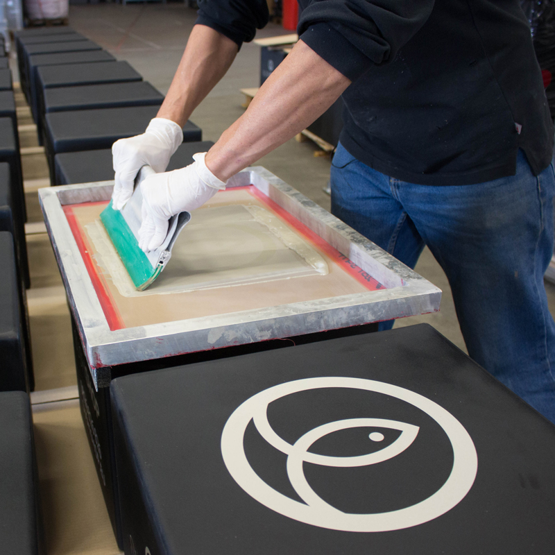Engels propose différentes sortes d’impression pour votre bac, comme un marquage à chaud, la tampographie, une marque au fer rouge ou une sérigraphie. En principe, l’impression est possible sur chaque partie plate. Différentes couleurs de base peuvent être utilisées.