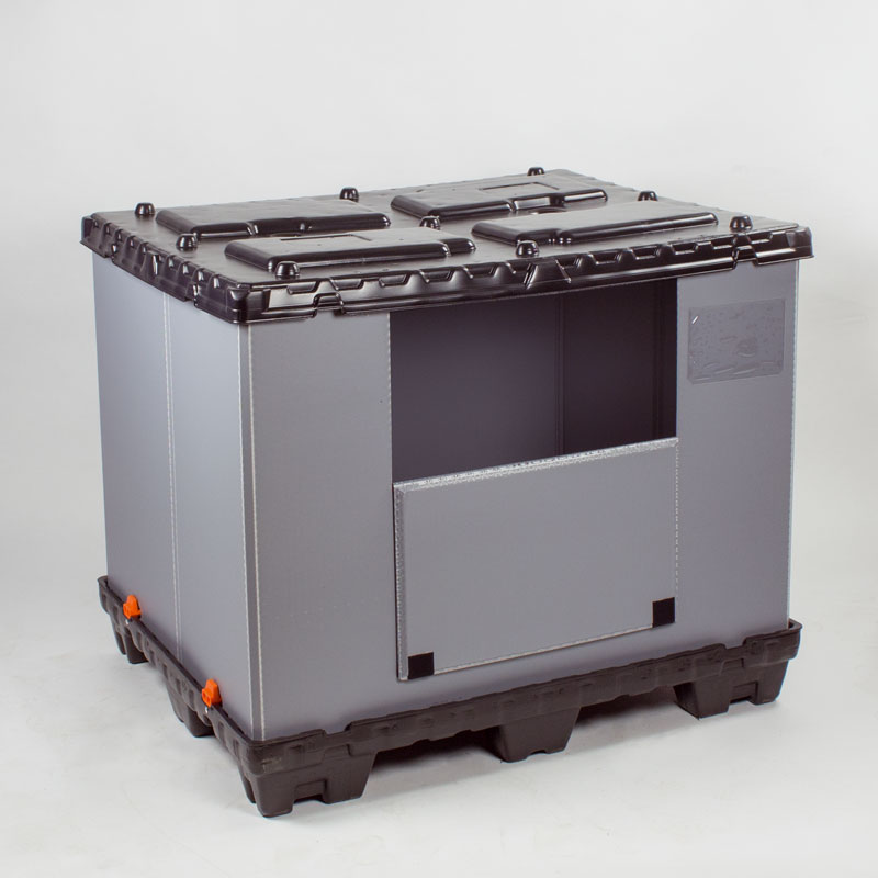 Les palettes avec parois démontables constituent une alternative logistique intéressante aux caisses-palettes. Leur chargeabilité est plus bas (environ 80 %), mais pliées, elles prennent beaucoup moins de place. Leurs dimensions internes sont plus vastes et elles sont nettement moins chères que les caisses-palettes pliantes avec couvercle.