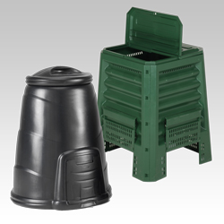Composteurs en plastique de 300 à 600 litres. De qualité supérieure, ils sont conçus spécialement pour les déchets ménagers et ceux issus du jardinage.