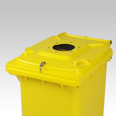 - Conteneurs poubelles avec fermeture à gravité, cadenas ou à clé