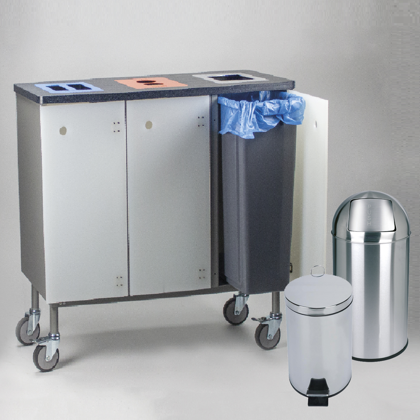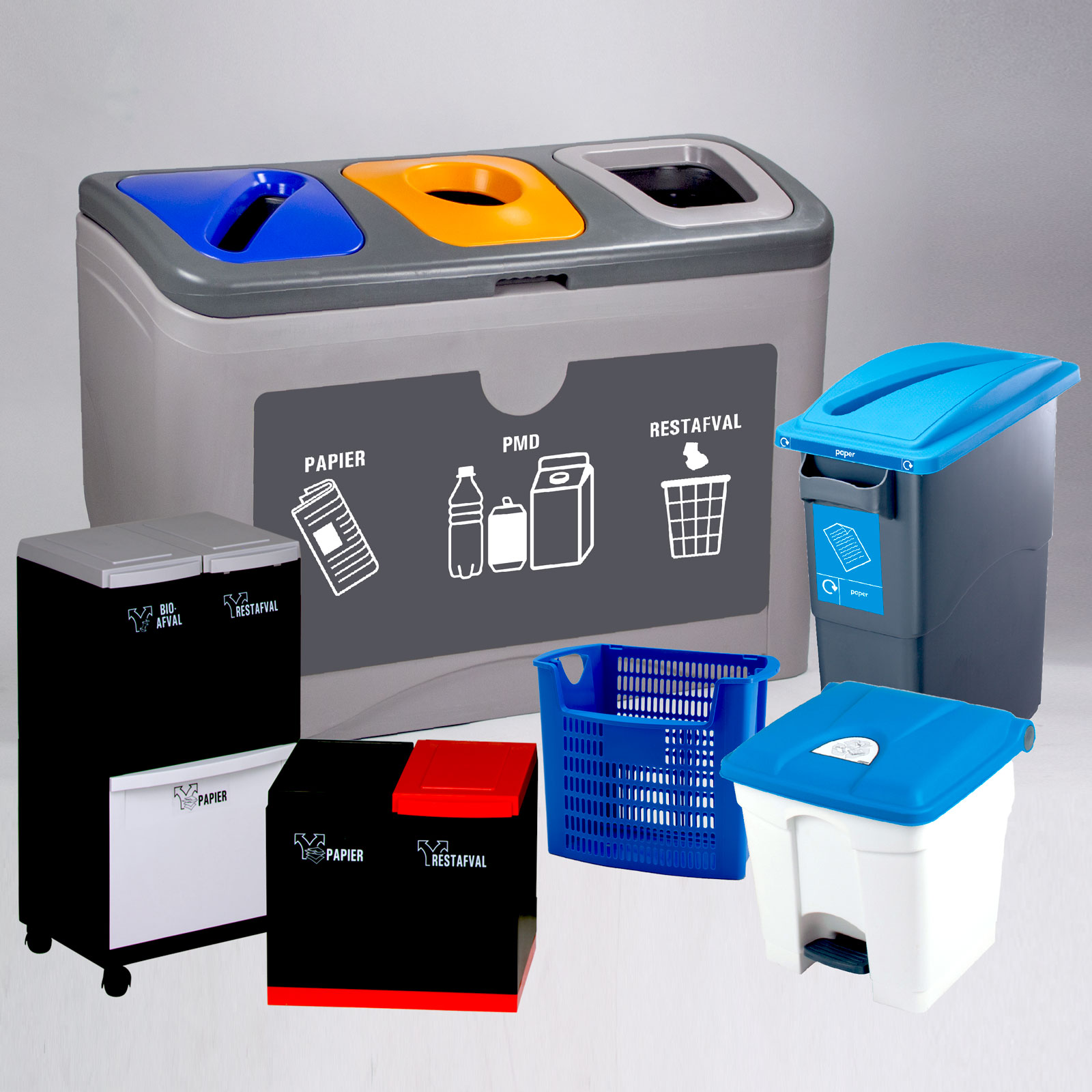 Nous proposons une gamme étendue de poubelles en plastique : des poubelles push, des poubelles à pédale, pour le tri et des poubelles hygiéniques HACCP. Afin de facilité le tri des déchets nous avons élaboré un système de poubelle modulaire. Celui-ci vous donne la possibilité de composer vous-même un ensemble de poubelles pour le tri sélectif. Elles peuvent être agencées de différentes manières : alignées, en pile ou sur chariot. Tout est possible et en différents coloris.
